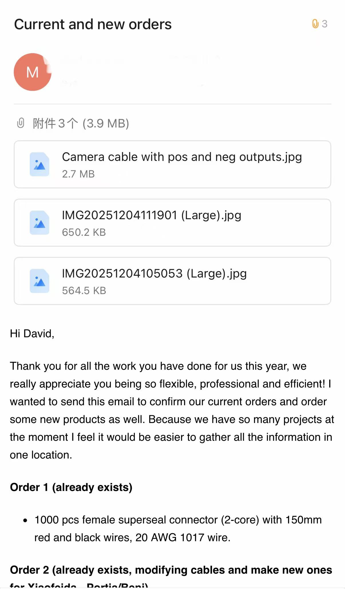 Timely Delivery & Quality Assurance: Recent delivery confirmations highlight seamless order fulfillment, with clients praising our flexibility, professionalism, and on-time delivery for bulk orders (e.g., 1000-piece superseal connector batches).